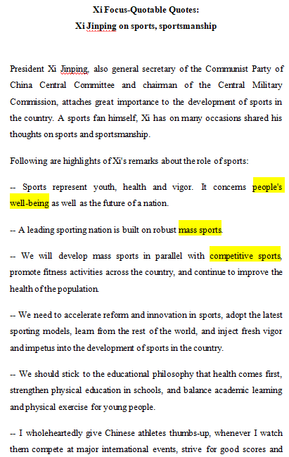 ⚫ 阅读文本资料——习近平关于体育的重要论述