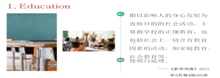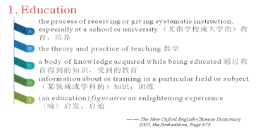 2)口语话题讨论。关注国家现况,探讨话题:当代教育的目的。