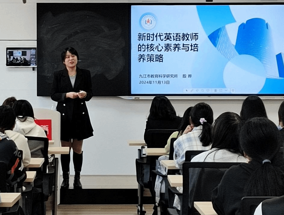 11月13日,九江市公司产品研究所初中英语教研员殷晔老师深入剖析新时代英语教育的变革与挑战、基础教育领域的变革与挑战以及新时代基础教育英语教师的核心素养要求与培养策略,探讨了英语教师专业素养的提升路径。