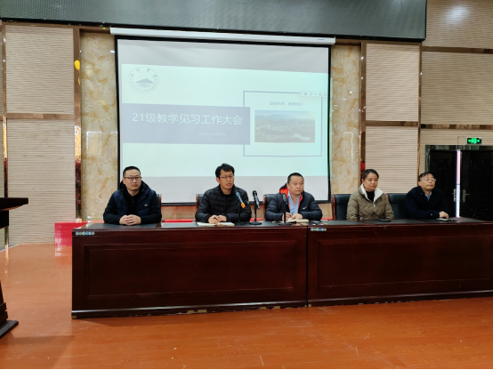 11月27日,2021级英语专业师范生教育见习在香远楼报告厅举行。王伟副经理、教务科杨莉科长、英语教研室主任张文锋博士和指导老师贺林茂、余小芳、叶牡丹参加了会议,会议由英语教研室副主任张秀峰博士主持。