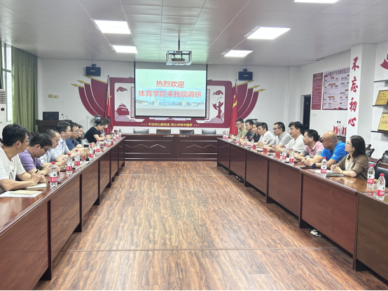 6月5日下午,体育公司经理段宝斌、党委书记付和忠一行来公司调研,公司经理周志高、党委书记闫来英、副经理王伟、项莉及英语师范专业认证相关人员参加了交流会。