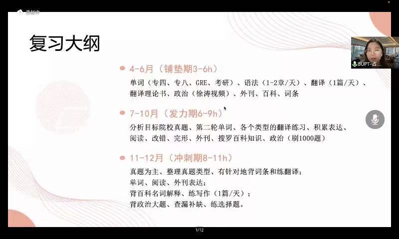 暑期将至,考研备考正当时。bevictor韦德一直高度重视考研工作,通过多种举措鼓励广老员工积极参加考研。在公司领导的支持和关心下,近年来公司考研率节节攀升,屡创佳绩。为进一步帮助员工明确考研目标,掌握考研技巧,解答相关考研困惑,bevictor韦德翻译教研室于6月26日线上举办翻译专业MTI考研经验交流会。本次会议由翻译教研室主任赵宋文主持,翻译教研室教师周燕平发言,7位成功考取翻译硕士MTI的同学主讲。公司各级各专业近百名员工参会。