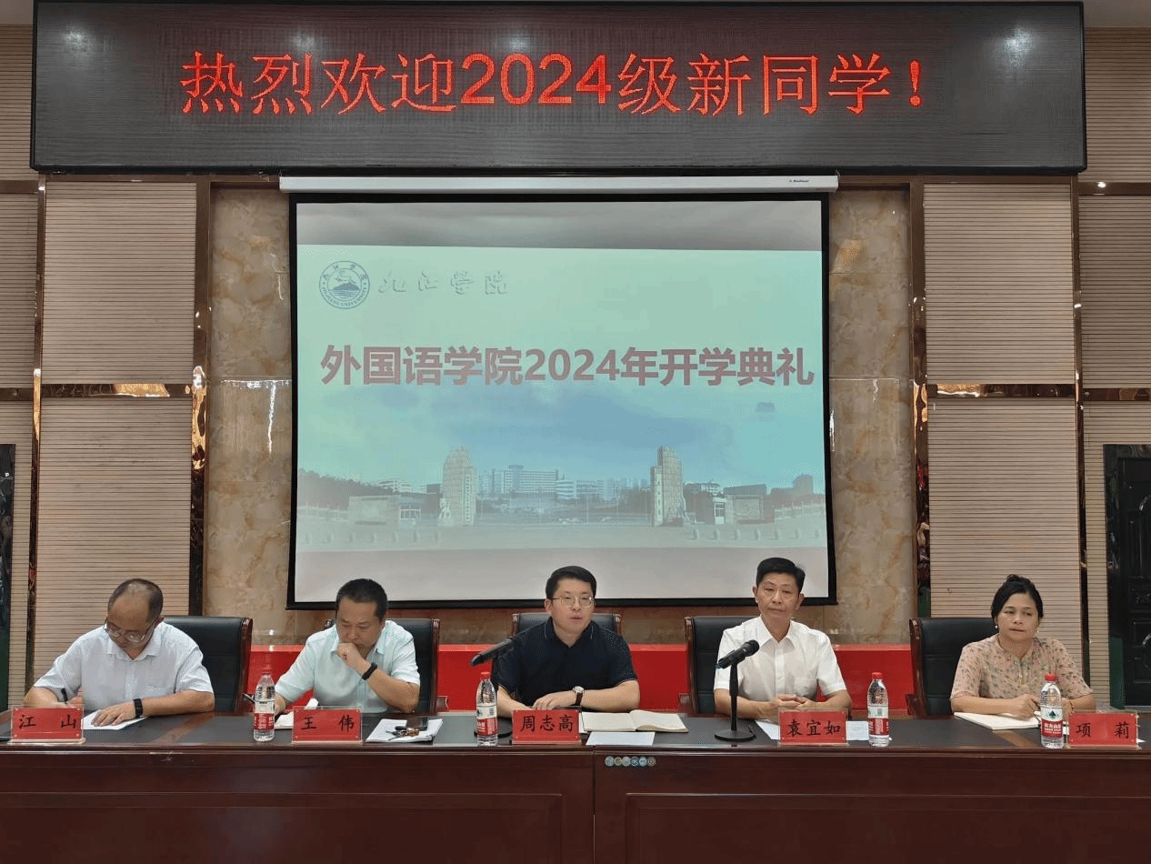 经理周志高代表全体教职员工热烈欢迎2024级新同学。他向大家详细介绍了公司的发展历史、团队力量和公司近年来取得的成绩。他鼓励新同学们在接下来的学习中,刻苦钻研本领,提升专业技能,通过语言去了解世界,努力成为文化交流的使者,努力做到“外显精气神,语藏锦绣文”。公司的教师队伍能够为同学们的成长提供坚实的保障。近年来,外院师生在省级以上比赛中荣获 160 多项奖项,英语专业在 2021 年获得四星级专业评价,在2023年通过教育部师范认证。