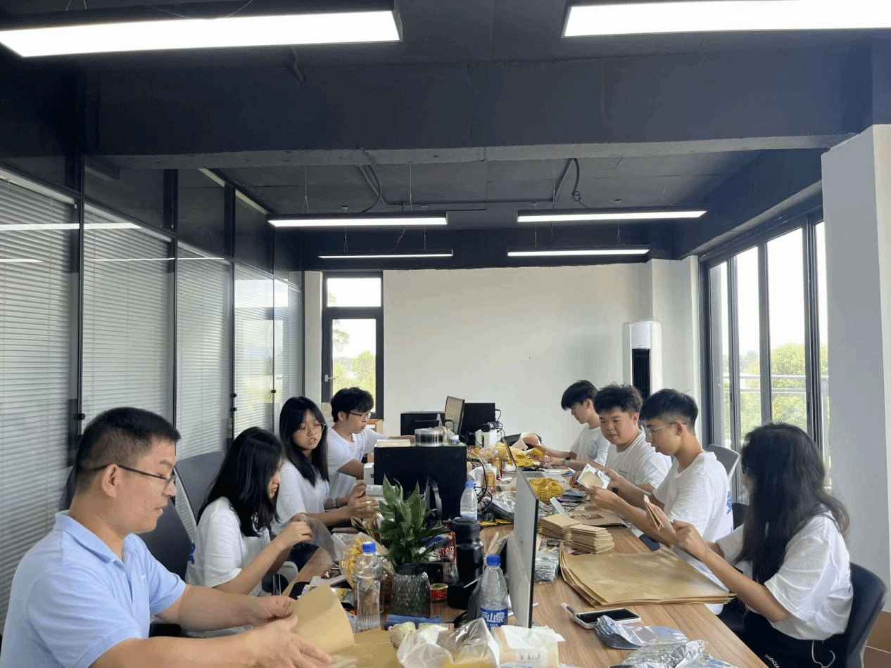 7月3日下午,实践团队来到位于青年创客之家三楼的碰碰姐食品有限公司的基地,参观和了解电商直播的全过程。碰碰姐食品有限公司是以制作卤味鸡为主的、生产线和基地均位于东山村的本土公司。创始人张少华向同学们介绍有关电商的相关知识,向同学们科普视频拍摄剪辑、制作的过程,也带领同学们进行电商打包的实践。
