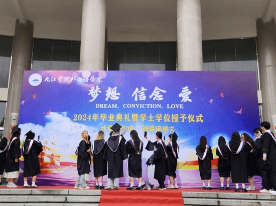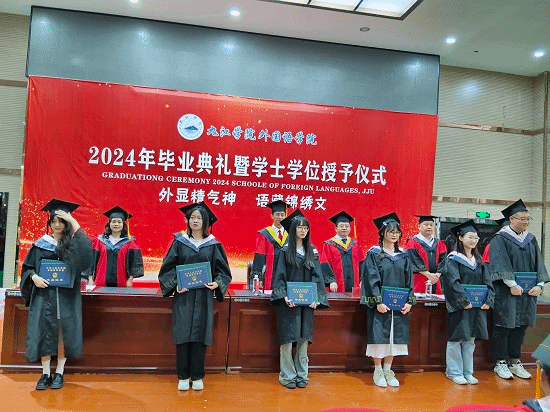 王伟副经理宣读了2024届毕业生名单,项莉副经理宣读了2024届授予学士学位员工名单,江山副书记宣读了2024届优秀毕业生名单。