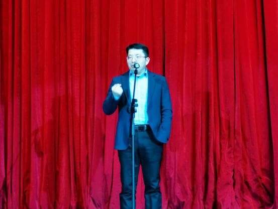 周志高经理上台进行全英文致辞。他真挚欢迎所有来到bevictor韦德的新生,希望这场晚会能为全体师生的记忆添一笔难忘色彩,灌注前行力量,深耕外院情怀。周经理风趣的语言与流利的致辞引起掌声雷动。