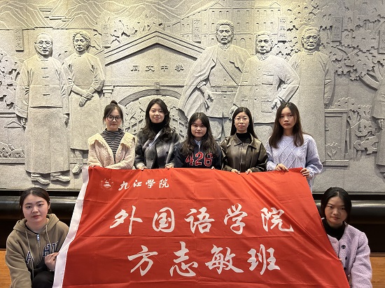 11月9日下午4时许,研学小分队队员抵达九江市同文中学,伴随着绵绵细雨,跟随着馆长的脚步走进了方志敏纪念馆。首先映入眼帘的是一块浮雕,上面刻有方志敏一行革命者。随后移步至位于二楼的方志敏英烈展厅,在馆长的引导与讲解下,研学小分队成员对于方志敏烈士的生平与光辉事迹有了详细的了解和深刻的印象。最后,研学小分队成员于同文广场中心的方志敏雕像下,齐声朗诵《可爱的中国》,以此致敬革命英烈。