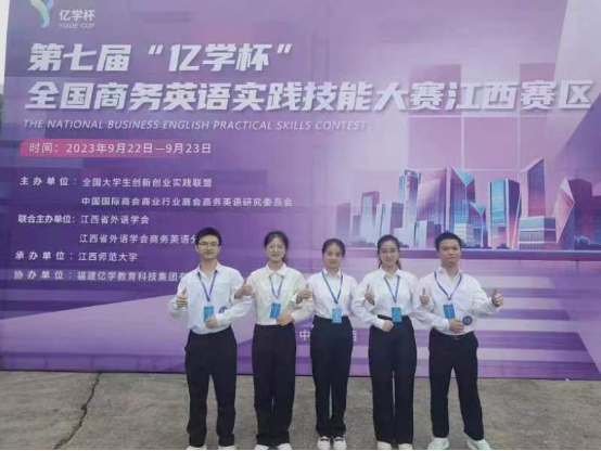 2023年9月23日,第七届“亿学杯”全国商务英语实践技能大赛(江西区赛)圆满落幕。公司商务英语专业派出的参赛代表队荣获获得江西赛区三等奖。