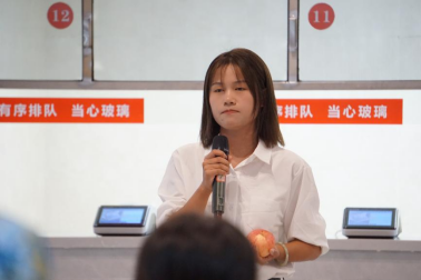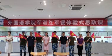 完成拉练后,两个连队会师紫薇园员工食堂,开展红军餐体验式思政课。军训营为夺得旗帜的班级个人颁发了奖励——一个苹果。退役军人张梦楠同学深情讲述了《上甘岭一个苹果的故事》,全体员工高唱《英雄赞歌》,表达了对革命先烈的敬仰和走好新长征路的坚定决心,发出了“请党放心,强国有我”的青春誓言。