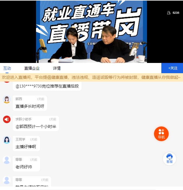 通过开展“直播带岗”活动,贴合了年轻老员工的生活,有利于就业信息的推送和宣传,助力2023届毕业生顺利就业。