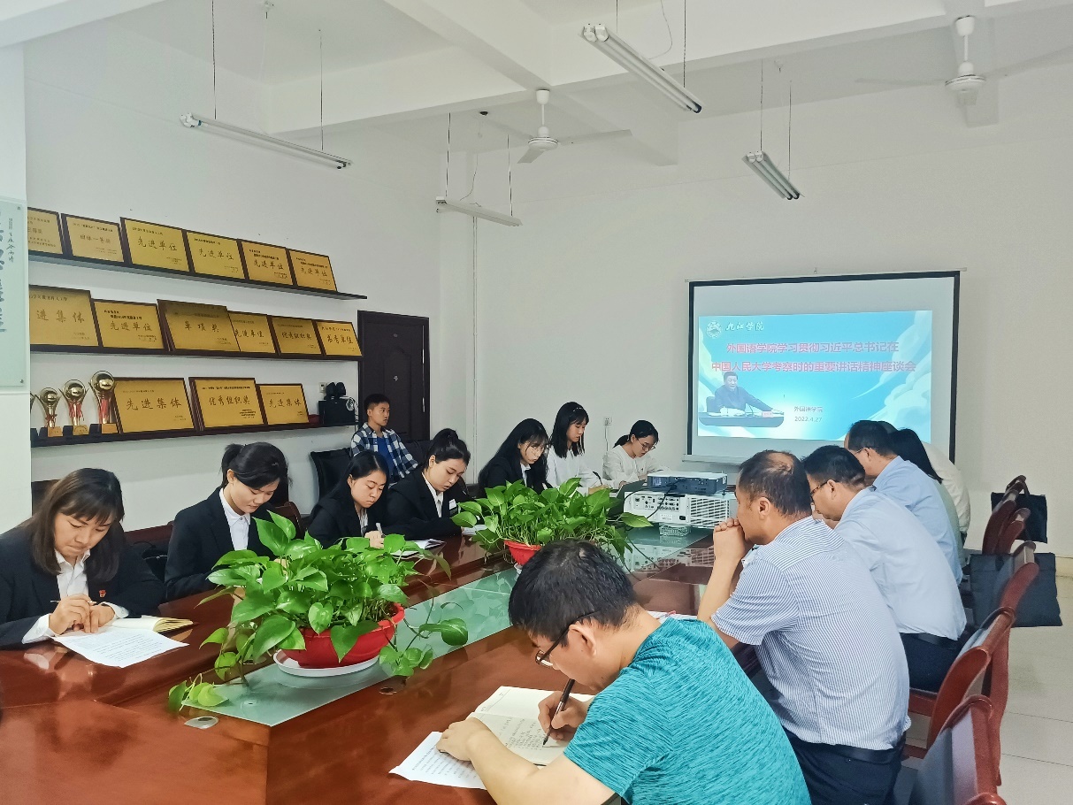 党委书记闫来英在听取师生代表发言后,对学工战线、青年战线落实习近平总书记重要讲话精神作了部署,他要求始终把牢迎接和学习宣传贯彻党的二十大这条主线,进一步校准工作方向、明晰着力重点、突出自身优势、发挥更大作用,不断加强和改进思想政治工作。尤其要抓好五个方面的重点工作。一要扎实开展好“喜迎二十大,永远跟党走,奋进新征程”的主题教育实践活动,抓住建团百年有利契机,宣传好贯彻好习近平总书记对新时代青年和青年工作的期望要求;二是要持续深化党史学习教育常态化、长效化;三是要不断创新思想引领的方式、方法;四是要着力优化和提升公司的共青团工作;五是要结合外语专业特色,进一步加强党的建设。