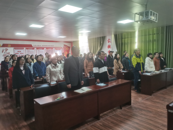 会前,全体党员起立齐唱红歌《没有共产党就没有新中国》,践行“唱响红色经典,凝聚奋进力量”唱红歌活动。