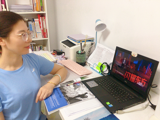 英语教研室教师林程:现在的中国已经跟以往完全不同,在中国共产党的领导下,我们国家会更加强大,作为一名外语教师,我深刻感受到了自己的责任重大,不仅要授业解惑,同时还要引导员工利用所学知识去看世界,去向世界展示中国,为中外交流贡献自己的一份力量。