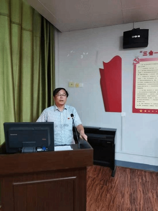 会议的第三项内容是党史学习教育阶段性交流发言。郭亮等4位同志结合自身实际,与全体党员分享了自己的心得体会。其中,外语A1742班的冯清林同学,代表员工党员分享了他发表在“学习强国”上面的文章《曾祖父,你改变了我》,深深地打动了在座的每一位同志。