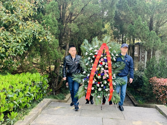 座落于共青城富华山的耀邦陵园松柏环抱、绿荫满园、安静庄严。全体党员怀着无比崇敬的心情瞻仰了耀邦墓,向耀邦同志敬献花篮,三鞠躬,表达了对这位伟大的无产阶级革命家、政治家的深切怀念和崇高敬意。