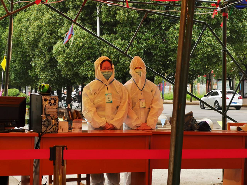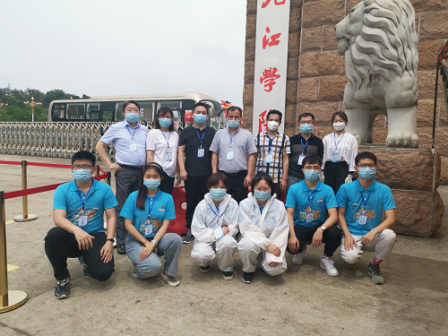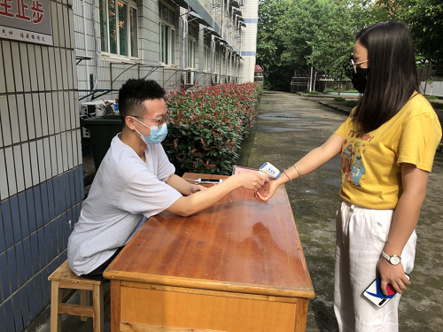 5月16日,32名同学兵分两路,一路在公司党委副书记彭晓的带领下前往公司西门值勤,另一路则奔赴到员工宿舍七、八、九栋值勤。为确保工作万无一失,正式上岗前王少斌老师提前10分钟把大家带到现场进行业务培训。测量体温、行李消毒、身份核验、信息登记、防疫常识普及等工作一样都不能少。志愿者们谨记着彭副书记的叮嘱“既要万无一失做好安全防疫,也要精心安排畅通同学们的回家之路”,工作中不敢有半丝懈怠和马虎,哪怕烈日当头,他们依然坚守。