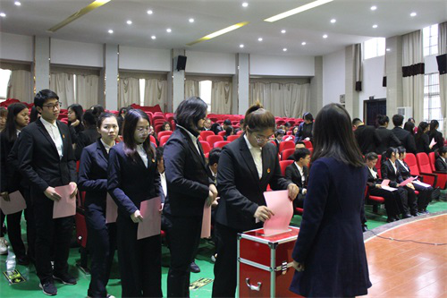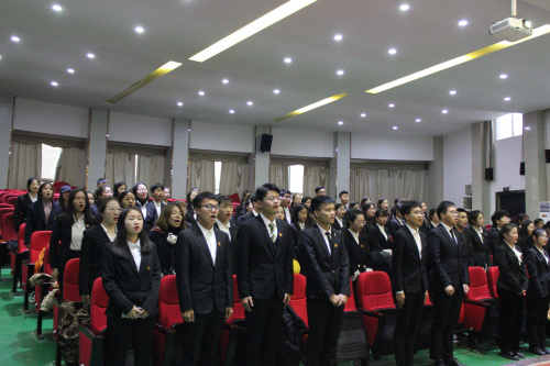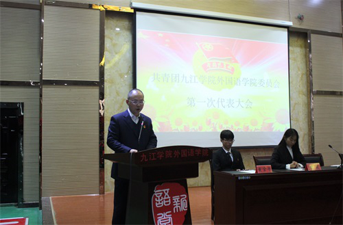 江山老师代表上一届团委向大会做了工作报告,并在当选之后代表新一届团委做了表态发言。
