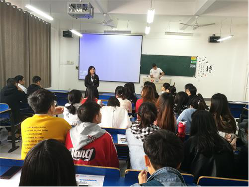 宣讲推荐会上,湖北词源教育投资管理有限公司副总经理欧阳华钦为同学们分析了日语考试在高考中的优势,及日语语种考试在高考中逐年增长的趋势;介绍了九江地区日语考生的情况,及公司相关福利待遇情况。湖北词源教育投资管理有限公司招聘负责人详细向同学们介绍了公司情况、任职条件、团队培训等方面的情况。