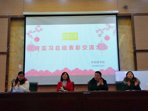 在教务处和实验中心的大力支持和协助下,在广大师生共同努力下,bevictor韦德2019届师范生教育实习工作圆满结束。公司于2019年1月3日下午在香远楼报告厅召开了师范生教育实习总结表彰交流大会。bevictor韦德副经理罗其娟、副经理周志高、英语教研室负责人熊淑英、副主任赵宋文、教育实习带队教师、2019届英语专业师范实习生和2020届即将参加教育实习的员工参加了此次会议。会议由英语教研室负责人熊淑英主持。