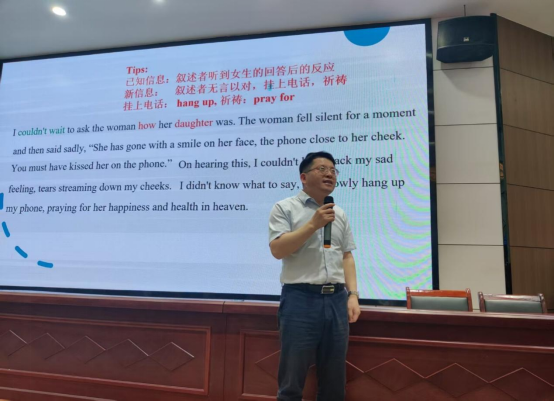 英语教研室主任张文锋现场讲授了高中英语读后续写示范课,双方教师就校本课程开发、员工英语核心素养的培养等展开热烈讨论。