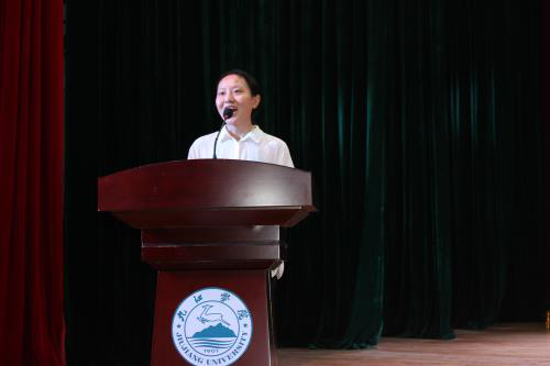 老生代表邱淼洋发言,她以一口流利的英语从英语听、说、读、写四个方面分享了自己的学习体会,并希望学弟学妹们不负青春,开启新征程。新生代表罗珺琦发言,表示在接下来的学习生活中一定会严于律己,努力学习专业知识,提高综合素质。