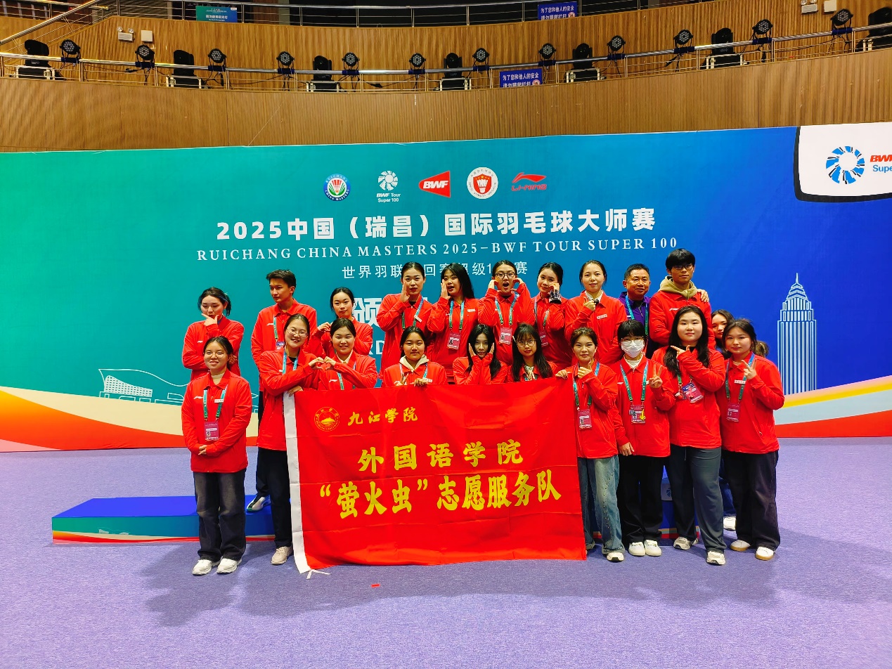 2025年3月11至16日,2025中国(瑞昌)国际羽毛球大师赛在瑞昌隆重举行,公司20名员工组成 “萤火虫” 志愿服务队积极参与赛事服务。他们活跃在赛事多个岗位,充分发挥外语专业优势,在语言翻译、接待指引等工作中,凭借扎实的专业素养,赢得各方赞誉。