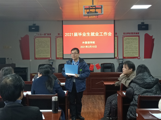 就业工作负责人李杰老师介绍了2020届毕业生就业统计工作的审核方式,通报了2021届毕业生就业基本情况。