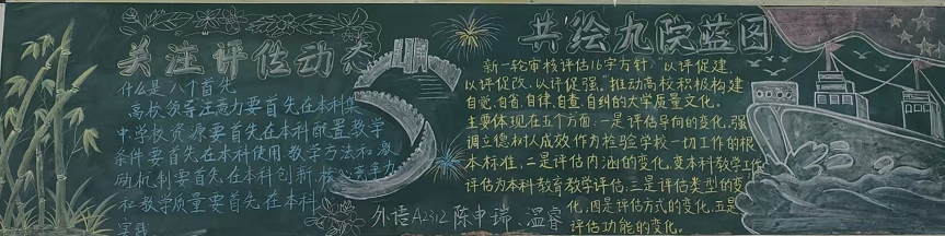 为进一步加强本科公司产品审核评估知识的学习宣传力度,营造员工积极参与审核评估活动的浓厚氛围,bevictor韦德通过更新宣传栏、组织开展本科公司产品水平评估知识黑板报评比等方式,进一步强化学习宣传力度。各班级黑板报作品精彩纷呈,在色彩运用、文字内容、布局排版等方面突显了同学们对本科评估工作的深刻理解和创意表达。