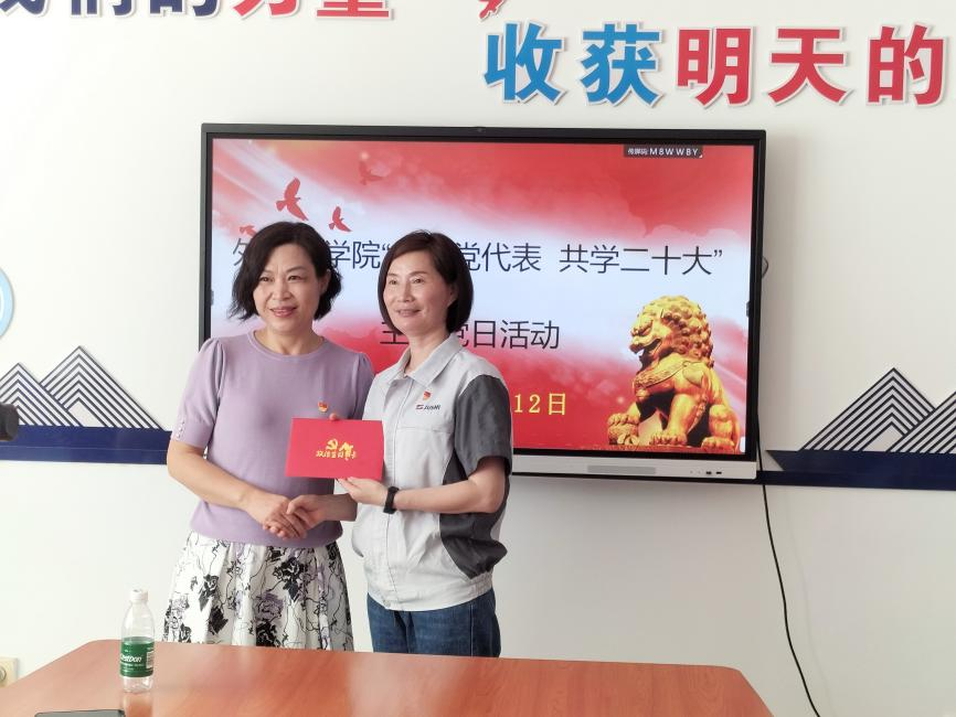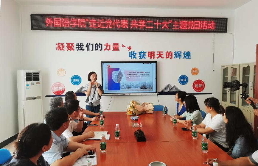 随后,赵小梅为大家上了一堂学习贯彻习近平新时代中国特色社会主义思想主题教育专题党课,生动描绘了党的二十大盛况,分享了参加党的二十大的思考感悟,以及她在企业创办帮扶工段等党建项目做法与成效。她勉励外院员工扎根中国大地,传承红色基因,趁年轻、勤攀登、多奋斗,在中国式现代化的赛道上奋力奔跑、奋勇争先。鼓励老师们坚守立德树人根本任务,把主题教育学习成果转化为干事创业、团结奋进的强大动力。
