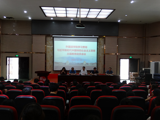 闫来英指出,开展学习贯彻习近平新时代中国特色社会主义思想主题教育,是强化创新理论武装的重要举措,是不断深化党内教育的重要实践,也是落实管党治党责任的重要内容和推动公司发展建设的重要手段。我们要牢牢把握“学思想、强党性、重实践、建新功”的总要求,牢牢把握“在以学铸魂、以学增智、以学正风、以学促干方面取得实实在在成效”和“凝心铸魂筑牢根本、锤炼品格强化忠诚、实干担当促进发展、践行宗旨为民造福、廉洁奉公树立新风”的目标任务,牢牢把握“把理论学习、调查研究、推动发展、检视整改贯通起来”的工作要求,把开展好主题教育与党的二十大精神相结合起来,与加强外语人才培养,推动外语学科发展结合起来,聚焦建设高水平应用型大学为推动中国式建设化贡献外语智慧和力量。做到理论学习有收获、思想政治受洗礼、干事创业有激情、服务师生解难题、清正廉洁作表率,推动主题教育走深走实。