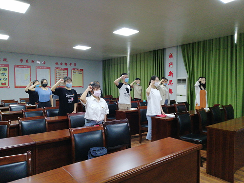 返校的员工党员收到了政治生日贺卡和《习近平新时代中国特色社会主义思想三十讲》学习读本作为政治生日礼物。返校的员工党员重读了入党志愿,一起回忆入党时的情形。在场和线上的全体党员在邓强同志的带领下,面向党旗,庄严举起右手,一起重温了入党誓词。